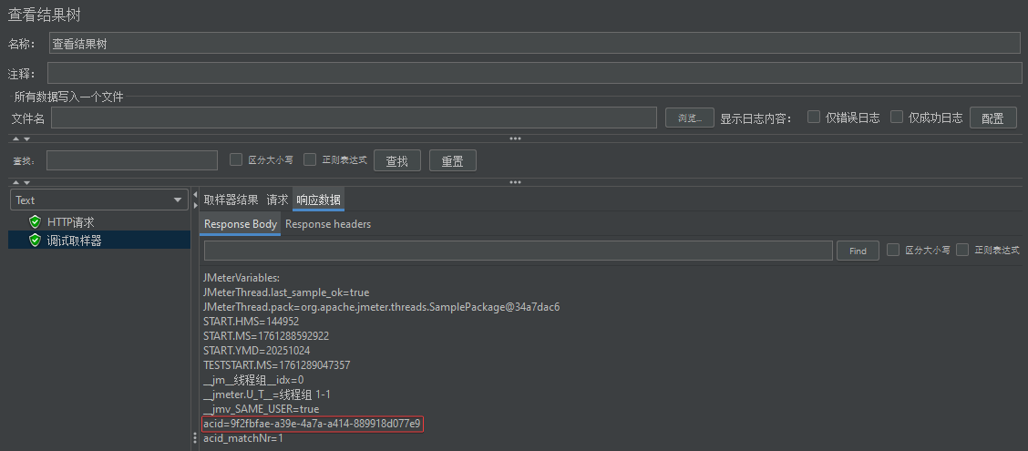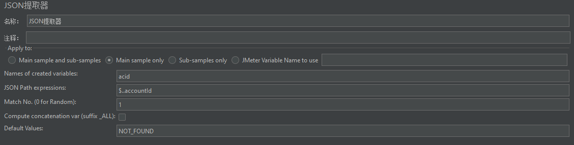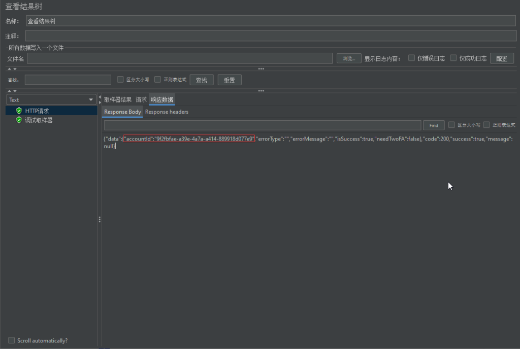1、如图所示,我需要提取响应报文中accountid的值,以方便后续使用