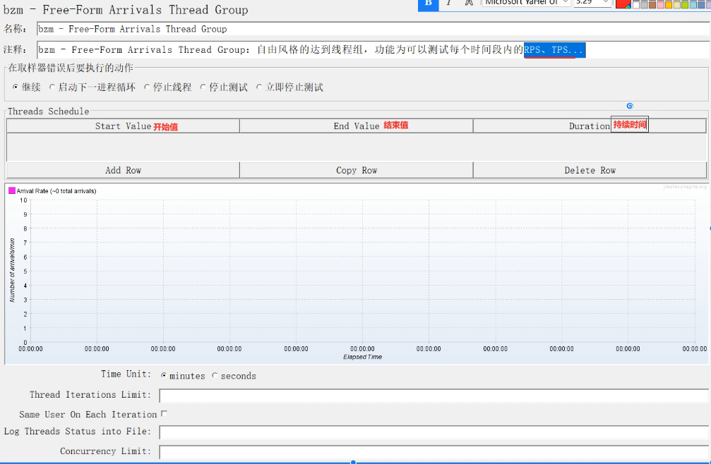 bzm-Free-Form Arrivals Thread Group:自由风格的达到线程组,功能为可以设置每个时间段内的RPS、TPS等