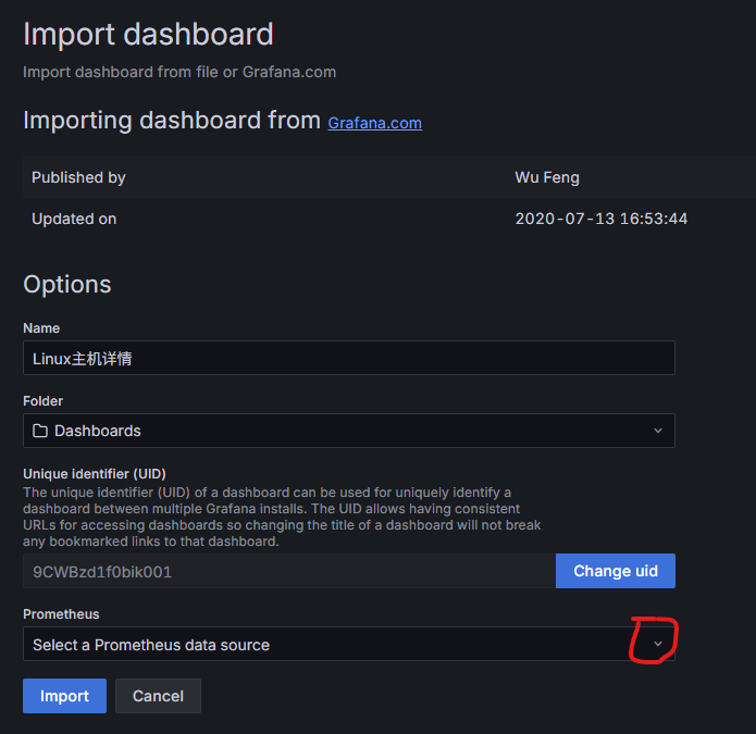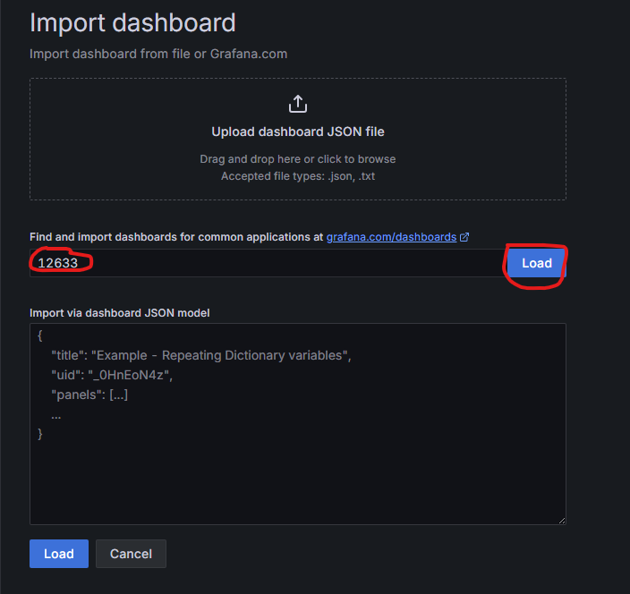 创建监控面板,通过导入官方面板来创建。通过官方模板的ID来导入面板。https://grafana.com/grafana/dashboards/