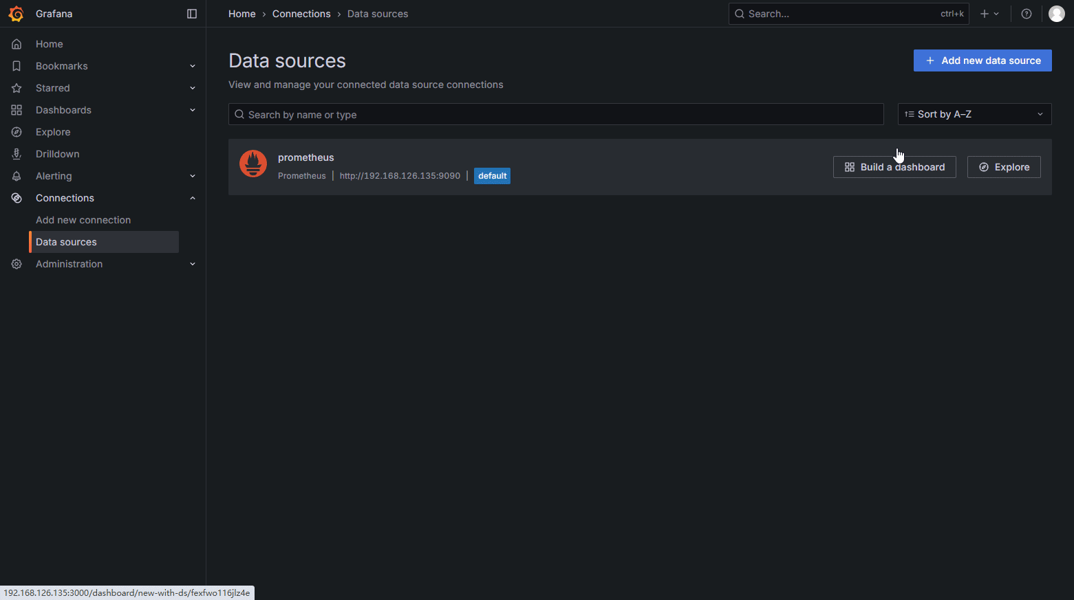 在Connections-Data sources中添加数据源
