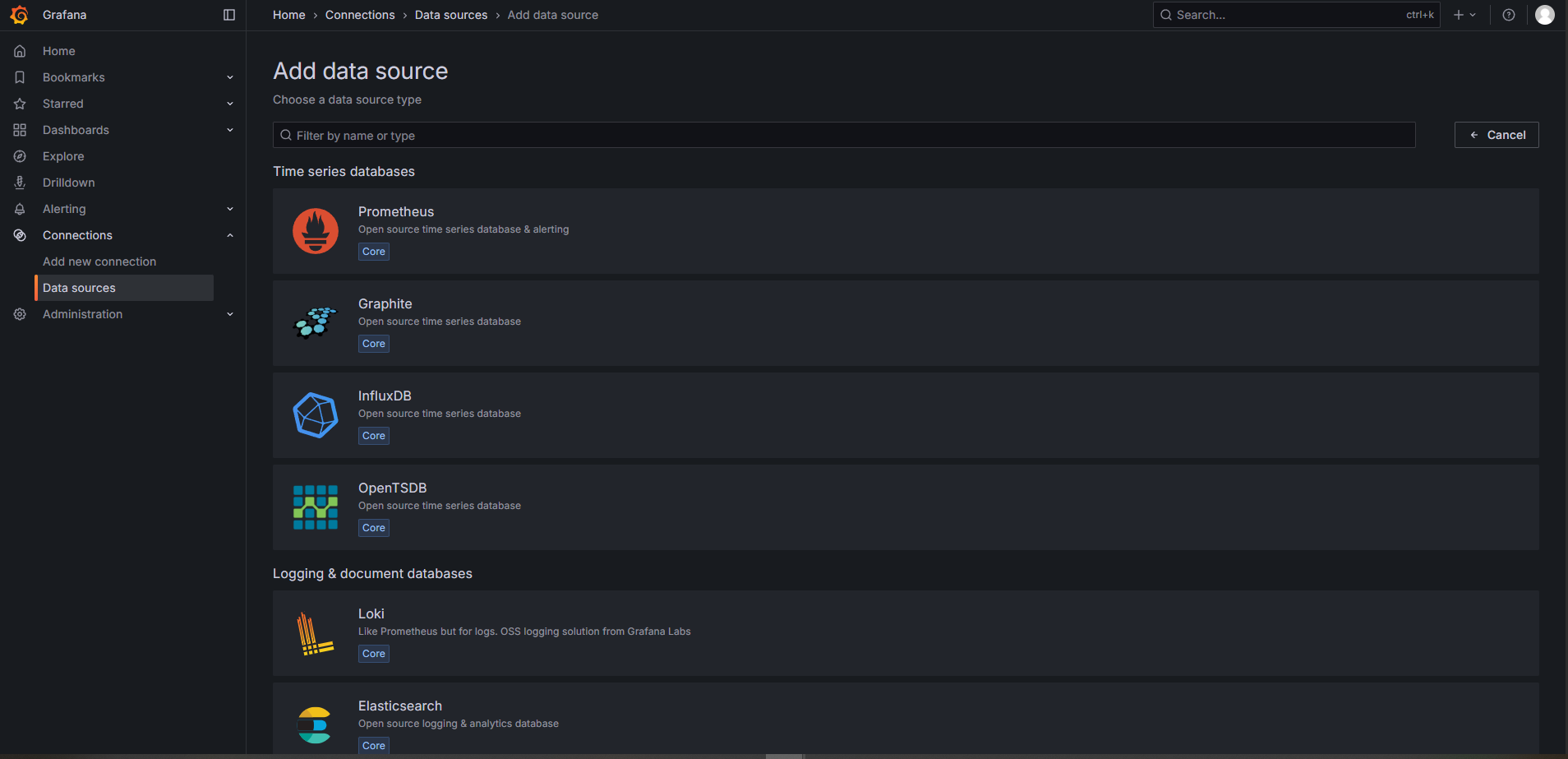在Connections-Data sources中添加数据源